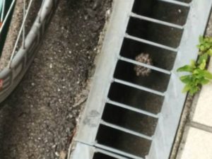後日、完全武装し、側溝を持ち上げ、蜂の巣除去。