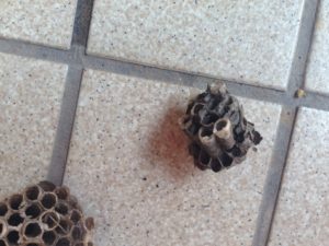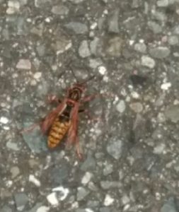 マンションエントランスを飛び回る蜂を発見。