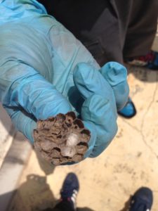 しばらく観察すると側溝に蜂の巣が…!